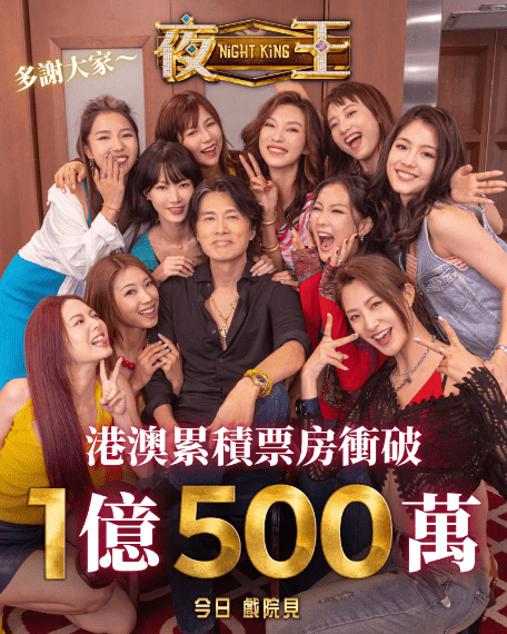 安樂出品兼發行、吳煒倫執導兼編劇,黃子華、鄭秀文、王丹妮、廖子妤、楊偉倫、謝君豪與盧鎮業主演的夜總會題材喜劇《夜王》自二月十七日農曆大年初一開畫以來,在票房表現上相當理想。而繼早前宣破破億以後,電影於今早透過安樂影片及電影《夜王》官方Facebook專頁宣佈,電影於香港及澳門截至四月一日的累積票房,已突破1.05億元。