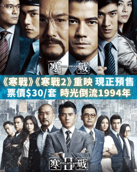據安樂發行日前的發佈會宣佈,旗下的百老匯院線將於四月十六日起重映首集《寒戰》,並於四月二十三日起重映續集《寒戰2》。然而更為震撼的是,是次重映將其票價「時光倒流」至1994年的香港脊山票價三十元,而重映的戲票已開始發售。