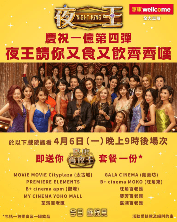 安樂出品兼發行、吳煒倫執導兼編劇,黃子華、鄭秀文、王丹妮、廖子妤、楊偉倫、謝君豪與盧鎮業主題的夜總會題材電影《夜王》衝破億元票房大關後,在復活節亦繼續有當的宣傳。今天隨了於下午五時至九時請食魚蛋活動後,晚上九時後又再有宣傳。