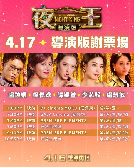 安樂出品兼發行、吳煒倫執導兼編劇,黃子華、鄭秀文、王丹妮、廖子妤、楊偉倫、謝君豪與盧鎮業主演的《夜王》將於本周四起推出重新剪輯長達163分鐘的三級導演版,而安樂發行也安排於本周五舉行謝票活動。