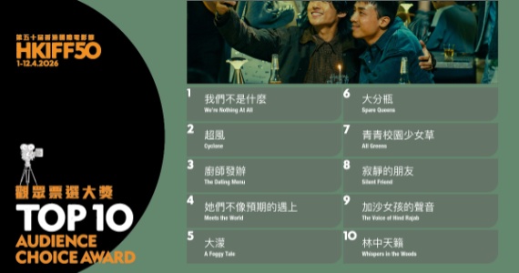 隨著昨天第五十屆香港國際電影節的閉幕,觀眾票選大獎的結果亦於今天中午公佈最終前十位電影,當中高先發行、邱禮濤執導,譚耀文、江熚生與陳毅燊主演的《我們不是什麼》成為觀眾票選大獎冠軍。