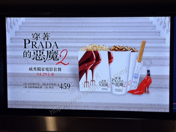 上圖所見,便是「講。鏟。片」讀者近期於台灣信義區信義威秀影城的小食部所攝,可以看到該戲院趁著迪士尼發行的《穿Parda的惡魔2》在台灣上映,在威秀影城推出了該電影主題相關的套餐。