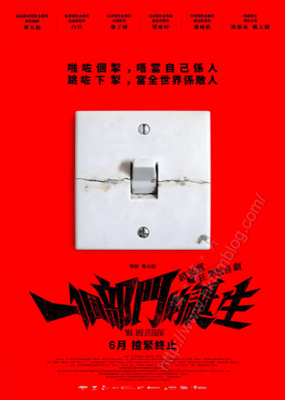 上圖所見,便是電影《一個部門的誕生》的新版海報。海報以紅色作為底色,中間有著一個破爛的開關掣。上方寫上「啪咗個掣,唔當自己係人」及「跳咗下掣,當全世界係敵人」的點題字眼。下方在片名寫上「超寫實瘋狂黑色喜劇」及「6月揸緊終止」的字眼確定映期。