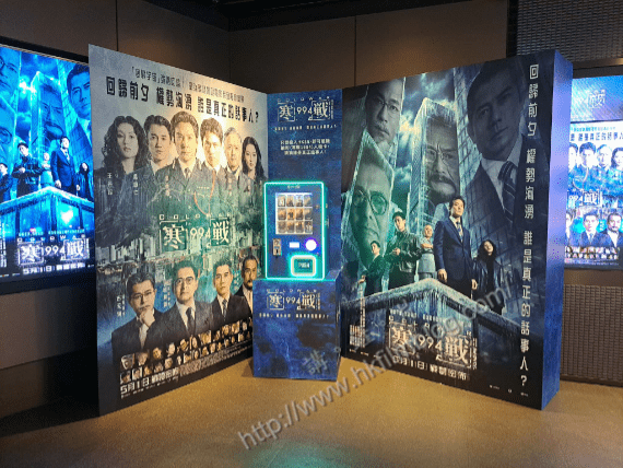 《寒戰1994》人物卡抽卡機設於安樂旗下百老匯院線的四家戲院,包括了九龍站Premiere Elements、元朗My Cinema Yoho Mall、葵芳百老匯及旺角朗豪坊Gala Cinema。而上圖所見,便是設於Premiere Elements的抽卡機,而觀乎擺放的位置與格局,其實跟早前的《夜王》相若。