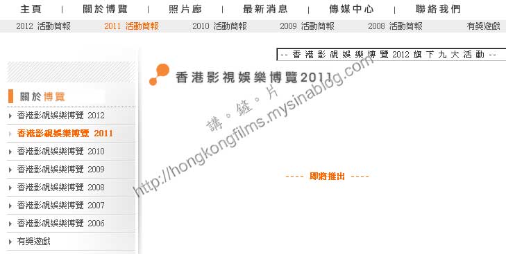 翻查今年一月五日由香港電影發展局發出的資料顯示,去年舉行的香港影視娛博覽2011早於2010年12月獲批資助180萬,到底該180萬是否沒有包括其相應的網頁更新呢?也許大家不妨猜猜有關的網頁的「即將推出」到底是何時好了。