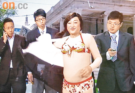 看看盧海鵬在電視「香港亂噏」,每每扮的藝人表情和動作像真度高。日前一個「師林」廣告中,他豁出去穿著三點式泳衣來模倣周秀蘭。不要叫男藝人去穿女裝三點式泳衣,即使平日拍戲要他們只穿泳褲演出,恐怕未必人人願意。