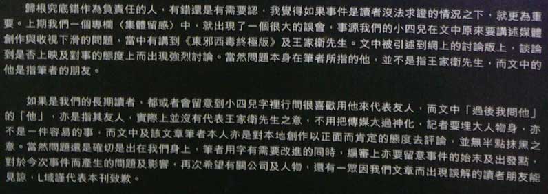 AV雜誌今期先作出澄清啟事,其後於專欄由另一撰稿人解釋「字裡行間很喜歡用他來代表友人」,並認為把傳媒過於神化。