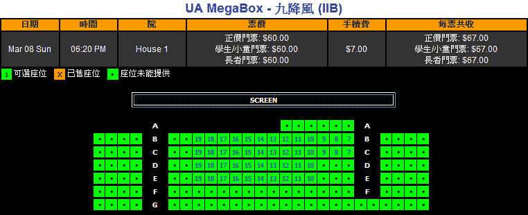 有少少更正,九龍灣UA Megabox及港島東UA太古城中心都是不設劃位的…