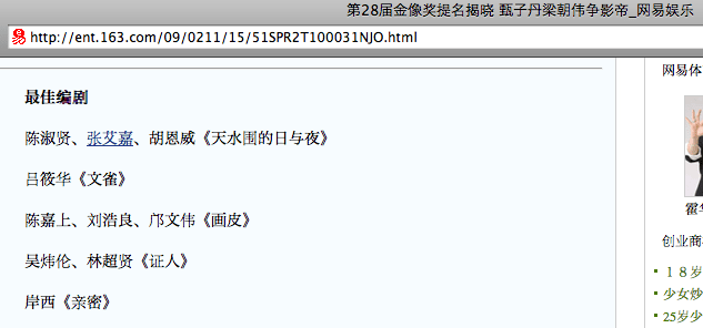 其實唔係好明,點解親密未上正場都又提名金馬,又提名金像…