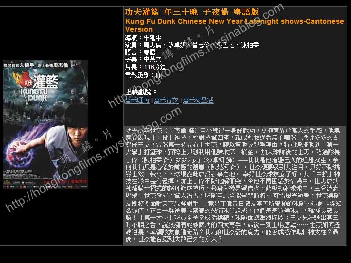 三級《功夫灌籃》於嘉禾電影網站出現,但片名竟是《功夫灌籃 年三十晚 子夜場─粵語版》,並於嘉禾旺角、嘉禾青衣及嘉禾荷里活放映。與此同時,同一購票頁內亦出現《功夫灌籃─粵語版》。三級《功夫灌籃》之說,十分奇怪,因為年三十已過了半個月以上。