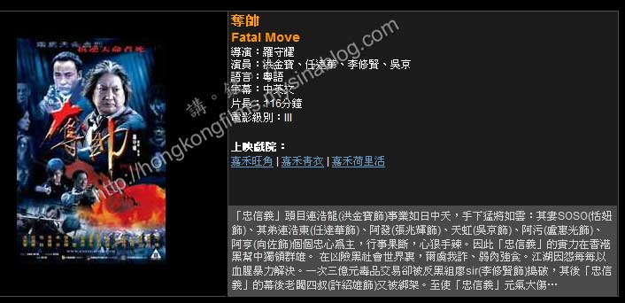 再看嘉禾網站《奪帥》介紹,片長及級別卻跟三級《功夫灌籃》相同,難度疑似三級《功夫灌籃》就是《奪帥》?還是系統程序或輸入出錯?