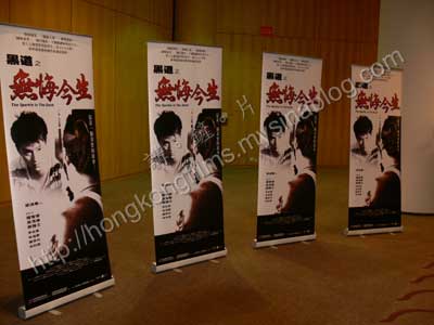 大家還記得上圖嗎?上圖是特派員於上月梁鴻華電影《黑道之無悔今生》時所攝,首映的攝影區擺放了四個「易拉架」。