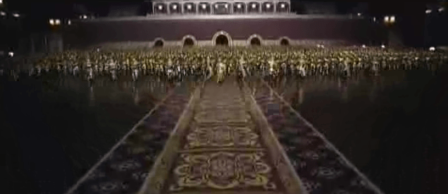 在《滿城盡帶黃金甲》後段,當中一對母女回到皇宮欲揭開身世時以至皇族出現謀朝篡位,卻出現軍隊在不適當時候出現。兩母女到皇宮沒人理,她們送死亦等到死後才有支援。結果,只賣了大量軍隊來。