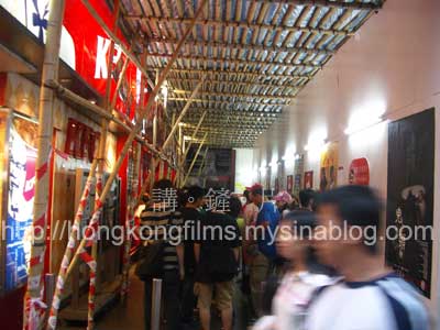 圖中所見,在電影海報展示的一方,已搭上棚架,而冷氣糟對上則蓋上了帆布。而受到工程影響,大家留意那幀《1408》的掛畫,也因受到棚架位置影響而向左傾斜。