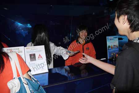 這位貞子在戲院其實需要做的東西不少。先是在戲院的入場處,跟戲院的事務員一樣負責入場的程序。