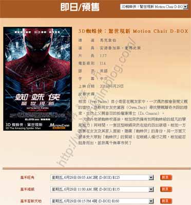 其實,嘉禾港威正式使用D-Box,也只是自上星期《車手》開畫才正式開始。事隔約一星期左右,嘉禾荃新天地也提供該等座位,並安排在一院和四院的最後排位置。票價方面,以明天開畫的3D電影《蜘蛛俠:驚世現新》為例,嘉禾旺角的標準票價為175元、嘉禾港威為170元,而嘉禾荃新天地則是160元。