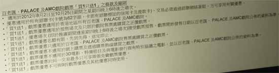 上圖所見,便是有關銀聯卡周四「買1送1」優惠的詳情。當中條款標明有關安排適用於八月二日至十月廿五日期間周四晚上六時後的場次。而需要享用有關優惠,除了提供銀聯卡外,更要以該咭簽賬。優惠不能與其他優惠共同使用,並且不適用於3D電影等。