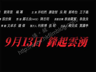 不過,此片其中一個有趣之處,就是其宣傳句語,採用了同音字的方案,寫出「鋒起雲湧」,正正是用上了兩名主角謝霆鋒與劉青雲的名字作串連,而原字又有著一個雙雄相遇之意,看起來也十分配合,也為原本設計平平的海報多了一點吸引力。