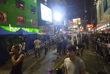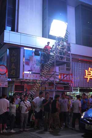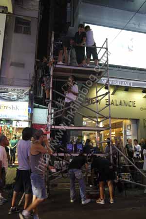 在旺角百老匯斜對面的行人路,也架起台架以便拍攝工作。