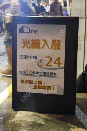 該場的道具包括模擬寬頻服務推廣員的攤檔。可是「光纖入屋」只需廿四元,看起來真的比現實平出一大截。
