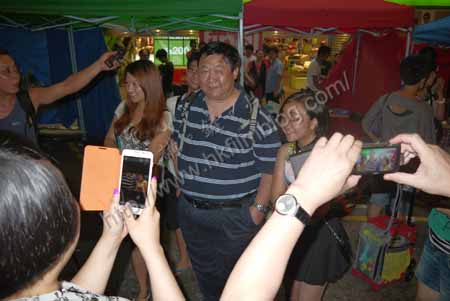 在拍攝結束後,疑似演員之一的秦煌被在場坊眾拍照留念。