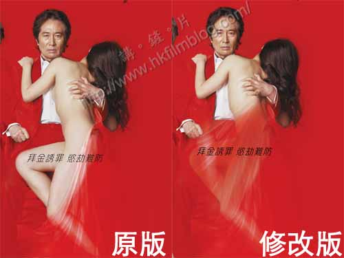 上圖所見的海報屬韓國原版的海報設計,可是當該設計在送檢之時,電檢部門卻指右方女子過分暴露,需要作出修改。