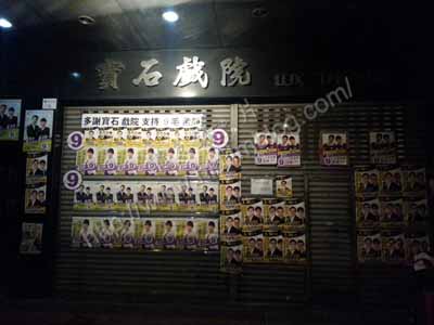 然而,奇怪的是,在寶石戲院門外,卻又有貼上六院黃毓民名單的宣傳海報,不知道戲院有沒有全力支持呢?