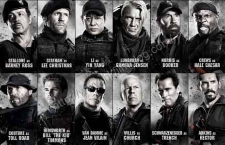 新加入的羅禮士及尚格雲頓,更是新一集的驚喜,羅禮士的角色Booker,是向他在1978年主演的電影《Good Guys Wear Black》中的同名角色致敬,老人家穿上軍裝,招牌式企定定地橫掃千軍,談笑自若,依然夠酷有看頭。至於尚格雲頓的「飛腿」依然強勁,還有他那獨特的比利時英語口音,都是他深入民心的個人特色。史泰龍、Arnold Schwarzenegger與Bruce Willis同場演出仍然是《轟天猛將》的賣點,今集出場時間更長,更會互相揶揄,抵死幽默。