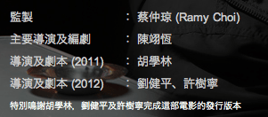 上圖所見,便是來自官方網站的資料,《第6誡》的監製為蔡仲琼,但導演與編劇一項卻分為三組,當中主要導演及編劇為陳翊恆、2011年版的導演及劇本為胡學林,而2012年版的導演及劇本則為曾執導《算把啦,老豆!》的劉健平與許樹寧。更為奇怪的是,在導演與編劇名單的底部,加上了一個附註,為鳴謝胡學林、劉健平與許樹寧完成該片的「發行版本」。