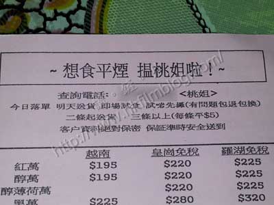 其實上述的單張,說穿了是走私香港的單張,購買的是一些非正式途徑入口而未完稅的香煙,如斯的做法是違反了香港的法例。因而大家絕對不應該以身試法。據了解《桃姐》的導演許鞍華也是一個煙癮其大的導演,未知看到這家「桃姐」的私煙之時,又會有何感想呢?相信她怎樣也不會選擇去光顧吧!