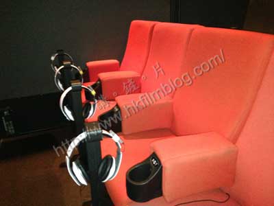 戲院座椅分為紅、黑兩色,手柄位置不能拉上,但手塾位卻較厚,每個座位均準備了一個白色的beats by dr. dre有線耳筒。