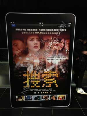 細看電影宣傳品的設計,看起來這個平板電腦宣傳品的「功能」不俗,左上角看到,既有無絡網絡WiFi和3G連接模式,右方則看到藍牙的標誌,像真度也不算低。不過,《搜索》畢竟在港只作小型發行,故此宣傳成本有限。不然的話,倘若真的加入WiFi與藍牙功能,讓觀眾可以利用手提裝置連線觀賞其電影相關資料製預告片段的話,也許會更為有趣。