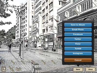 看到圖片,這個軟件可以有不同畫筆來營造不同漫畫效果,既可從現在圖片庫取圖,也可以即時拍攝。