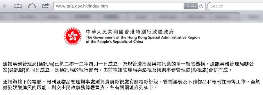 的確,一直以來電影評級的職責是由俗稱「影視處」的影視及娛樂事務管理處負責。可是,自從四月一日通訊事務管理局(「通訊局」)及通訊事務管理局辦公室 (「通訊辦」) 成立後,影視處已被合拼在通訊辦之內,而電影評級的工作,也交給通訊辦轄下的「電影、報刊及物品管理辦事處」負責。