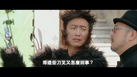 荷里活版本的「狼人」伸出利爪,這個港版則只能在手指夾著刀叉等餐具。