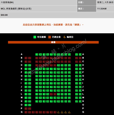 先來看看MCL將軍澳戲院的情況,可以看到明早十一時半的《六福喜事》售出戲票超過六十張,但是銀前前的第二及第三行卻全數售清。