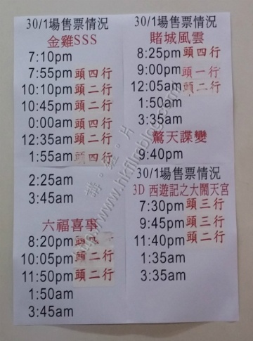 「講。鏟。片」於馬年的大年初一報導過旺角百老匯戲院在票房屏幕顯示入座情況外,還張貼相關通告顯示各場所餘戲票狀況。如此的方法雖然看似方便,但是戲院職員需要更新卻得來不易。「講。鏟。片」於昨天傍晚時分經過旺角百老匯戲院時,便目睹其更新的情況。