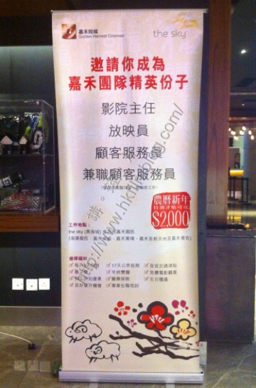 上圖所見,便是「講。鏟。片」情報人員日前於奧海城The Sky戲院所見,可以看到嘉禾旗下戲院招聘各類戲院相關職位的通告。不過,最大的賣點,就是特別寫上設有二千元的農曆新年特別津貼。除了這些津貼外,同時也該戲院的其他福利,如每個月獲五天例假、醫療保險、生日禮遇等。