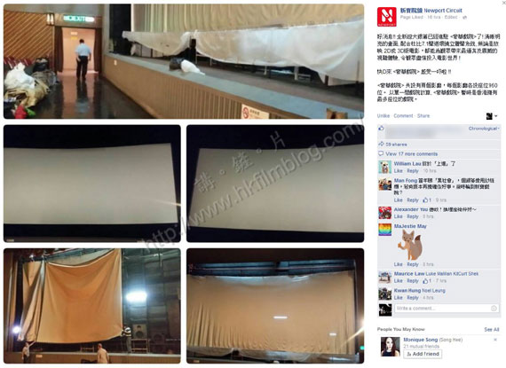上圖所見,便是來自新寶院線的官方Facebook,可以看到該處張貼了豪華戲院更換銀幕的相片。而在介紹時更以「全新超大銀幕已經進駐豪華戲院」作為賣點,同時也標榜戲院的7.1聲道環繞立體聲的系統。大家也許從其官方Facebook圖片,可以看到一家大戲院更換銀幕是如何的大工程。