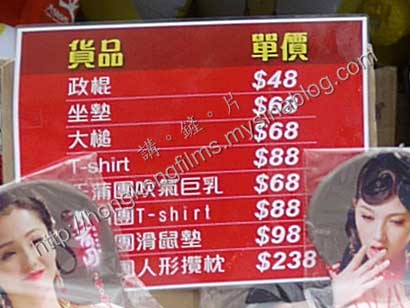 先來看看各產品的原價,吹氣巨乳要六十八元,T-Shirt要八十八元,滑鼠塾要九十八元,而人形攬枕更索價二百三十八元。