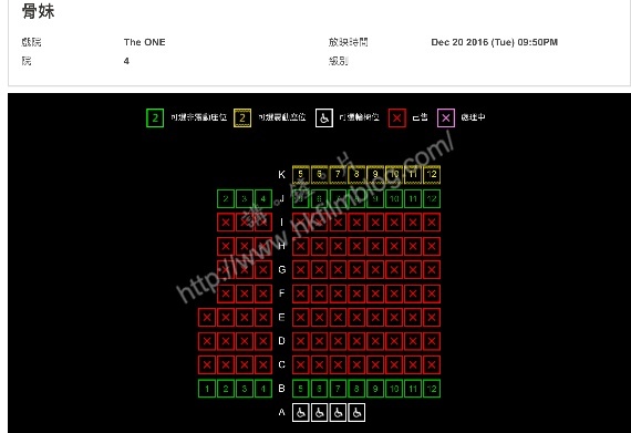 從預售情況所見,可以看到大部分戲票看來已被電影公司預留,但仍有最後兩行與最前一行作公開發售。