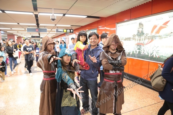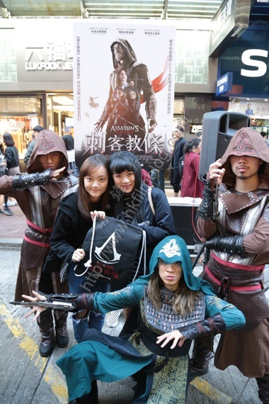 《刺客教條》可算是今年巴福斯影業繼月初的《鋼鋸嶺》後又一重頭之作,而在周末的宣傳裡,也到訪了多家戲院與旺區進行,其中一站便來到全年收入最高的Cinema City朗豪坊。一眾演藝人員扮演電影裡的刺客角色,並且與在場觀眾合照。