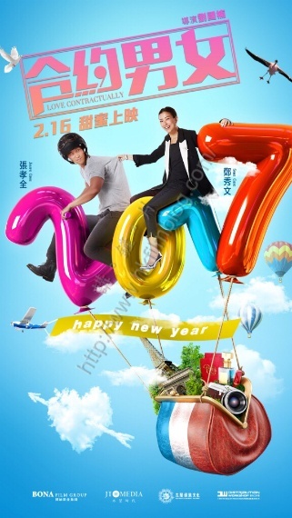 發行工作室在港發行、新晉導演劉國楠執導,鄭秀文與張孝全主演的《合約男女》擬於情人節檔期的二月十六日在港上映。電影公司便於年底推出一負踏進2017年的主題海報。可是整幀海報拼砌效果求其,而拿上紅白藍的手袋看起來相當老套,如斯來迎接新年,看起來還以為新一年已經跌進深淵一樣。