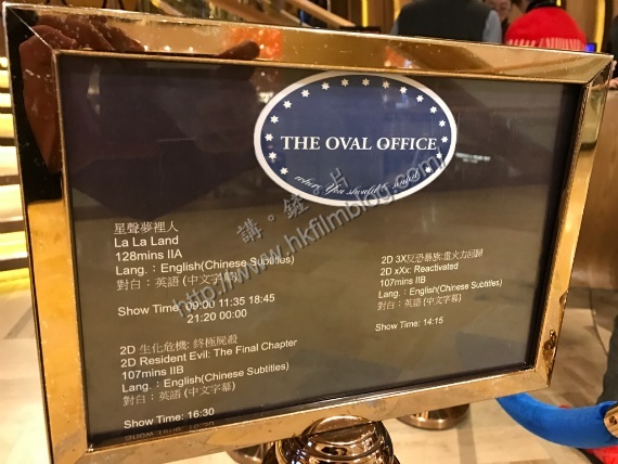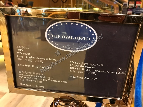 上圖所見,便是「講。鏟。片」情報人員於大年三十晚上在AMC Pacific Place戲院所攝,可以看到該天該院的貴賓影院放映三部電影,當中包括鐳射與高先發行的《星聲夢裡人》、索尼發行的《生化危機:終極屍殺》2D版及洲立發行的《3X反恐暴族:重火力回歸》2D版。