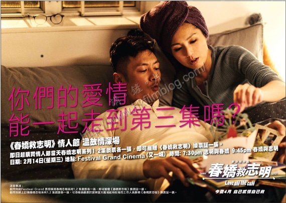 寰亞發行、彭浩翔執導、楊千嬅與余文樂主演的《春嬌救志明》將安排於今年四月在港上映,寰亞方面特別安排在情人節於又一城Festival Grand戲院放映該系列的前兩站。先於晚上七時半放映首集《志明與春嬌》,而晚上九時四十五分別放映第二集《春嬌與志明》。雖然舊片放映仍維持星期二的七十元票價,但是連購兩片的觀眾,卻可以獲贈《春嬌救志明》於Festival Grand使用的換票証一張。