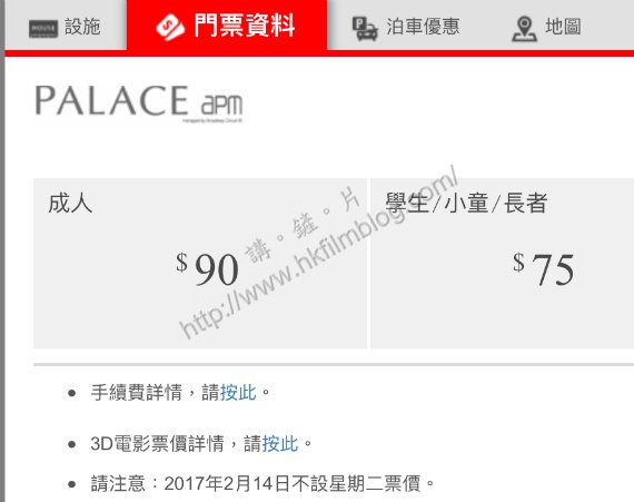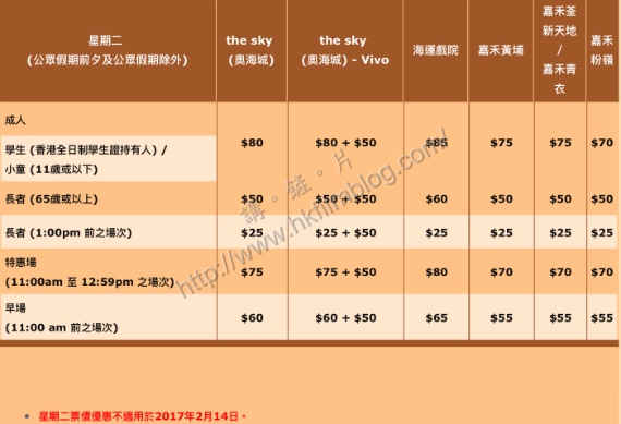 先來看看去年全港市場佔有率達三成的百老匯院線,在其票價資訊方面已寫上「2017年2月14日不設星期二票價」。