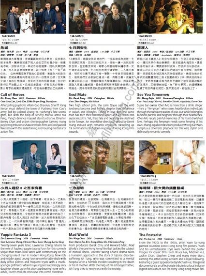 有趣的是,《美人魚》雖是去年賀歲檔期電影,但未知是否受到節期所限未能於上屆邀請,改於今屆回顧,變成一屆有兩部不同年份的賀歲電影出現。在場次編排方面,由於各片均曾在香港作商業發行公映,故此全數只安排於平日日場在香港藝術中心Agne b電影院放映,看來有意重溫的觀眾,或需要請假來觀賞了。