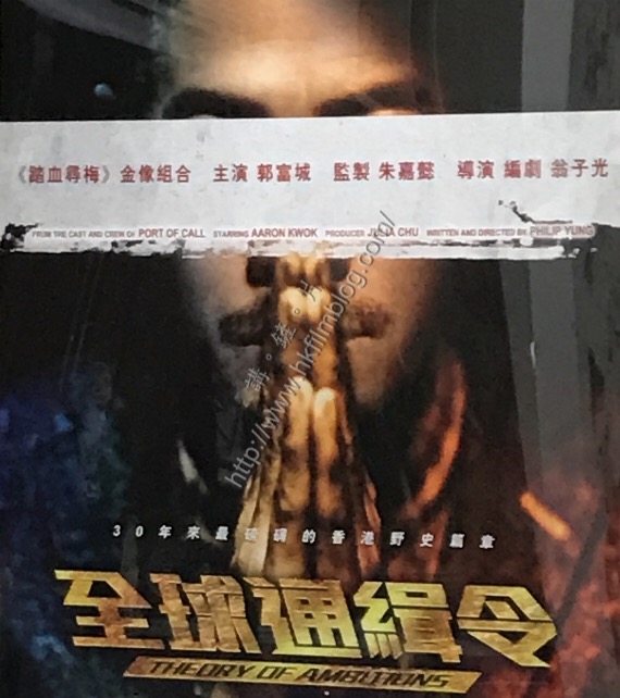 《全球通緝令》的海報,於今年香港國際影視展的美亞娛樂的專區所月嵬。海報可以看到明顯地同屬美亞發行的《踏血尋梅》全像組合,當中包括主角郭富城、監製朱家懿及導演與監製翁子光,並且以「30年來最磅礡的香港野史篇章」作為點題字眼。而海報郭富城合起雙手,但看不到眼部。