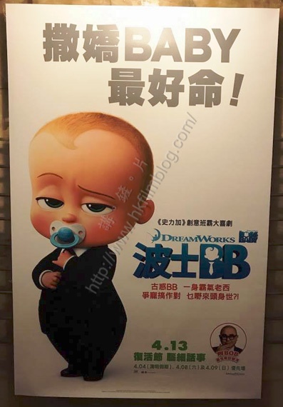 上圖所見,便是「講。鏟。片」情報人員於屯門巴黎倫敦紐約米蘭戲院所攝,可以看到電影《波士BB》香港宣傳海報以「撒嬌BABY最好命!」為題,字眼很明顯拿上了彭浩翔執導的港片《撒嬌女人最好命》即時應用。