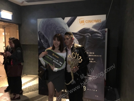 入場前,電影公司已經向入場的觀眾送上襟章一個,到戲院門口,又有跟Face Hugger合照的面書打卡宣傳活動,參與的觀眾又有一份附在電話套外的卡套小禮物。